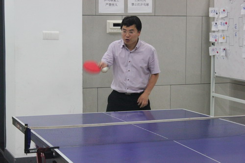 參賽的選手不全是經常打乒乓球的強者,有些還只是初學者,抱著重在參與,重在鍛煉的心態加入到比賽中來,作為第一屆比賽的季軍陳總自然也沒有錯過,但遺憾的是簽運不佳,第一輪就碰到了最終的冠軍選手老潘。