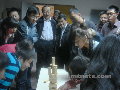 柴教授、趙博士饒有興趣地觀看員工娛樂活動