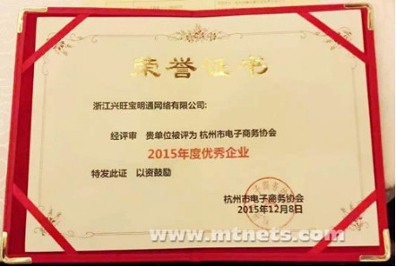 興旺寶明通榮獲“2015年度杭州電子商務優秀企業”稱號