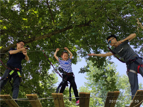 射箭熱身結(jié)束后,機(jī)床商務(wù)網(wǎng)團(tuán)建活動進(jìn)入當(dāng)天第一個正式項(xiàng)目——樹上冒險(xiǎn)!只見我們的“大朋友”帶著“小朋友”驚險(xiǎn)穿梭于樹上各種障礙。不得不說,這次旅行唯一的家屬——瑤瑤小朋友真的是非常勇敢呢!
