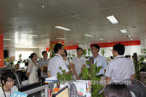 王處一行在陳總等人的陪同下參觀了公司技術部、市場部、服務部、編輯部等辦公區(qū)域,對公司的發(fā)展規(guī)模表示贊賞。陳總詳細介紹了公司各職能部門的主要工作和業(yè)績,講解了公司近幾年的發(fā)展歷程和增長數據。王處鼓勵明通發(fā)揮公司核心優(yōu)勢,繼續(xù)保持這樣高速發(fā)展的勢頭,杭州信息服務業(yè)的發(fā)展需要明通這樣有實力的科技企業(yè)。